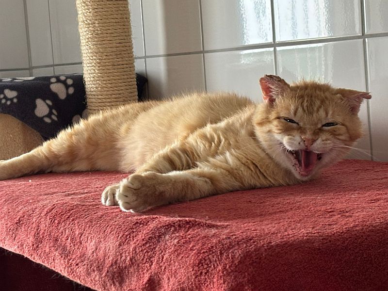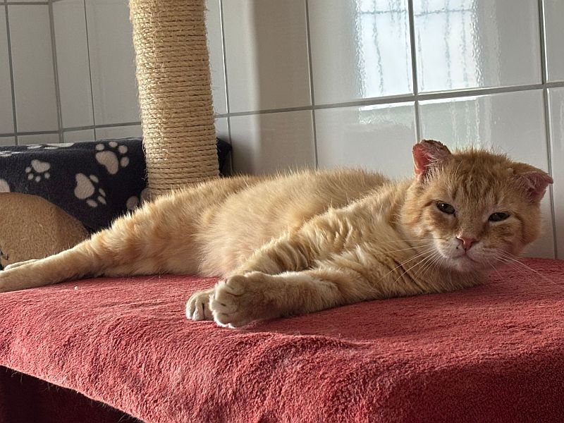Mittlerweile geht es Garfield wieder gut, allerdings fühlt er sich bei uns im Tierheim überhaupt nicht wohl.