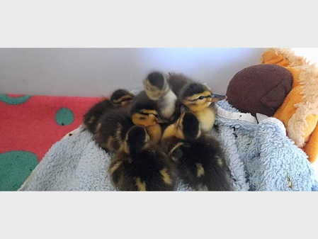 An einem Verkehrsknotenpunkt in Geislingen, in der prallen Sonne wurden frisch geschlüpfte verwaiste Entenküken gefunden,
