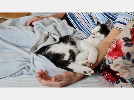 Nach ein paar Tagen ist sie schon zutraulich geworden, lässt sich inzwischen oft streicheln und kommt gerne zu uns.