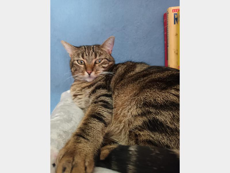 Er freut sich über Menschen, über andere Katzen, über ein grösseres Spielzimmer im Tierheim, über Streicheln, über Spielen, über..........