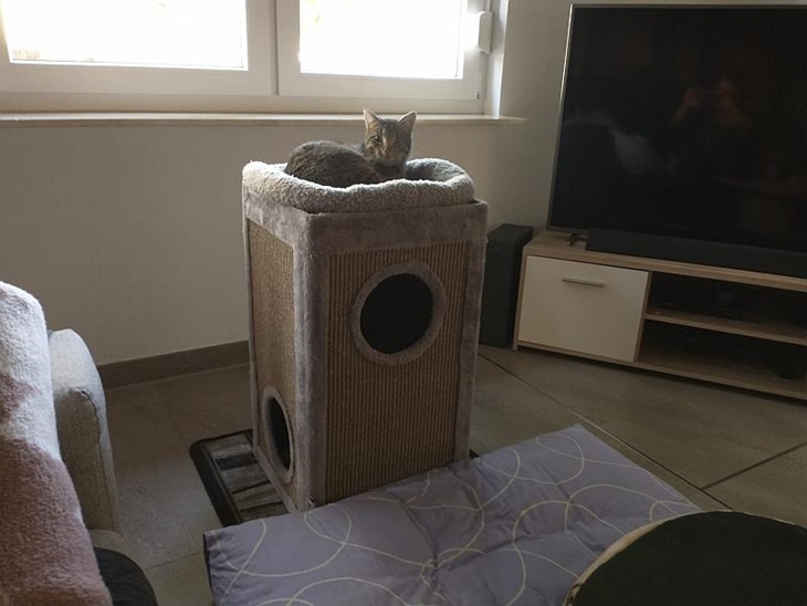 Das clevere Kerlchen hat sich Hilfe gesucht und gefunden in einem Katzenhaushalt.