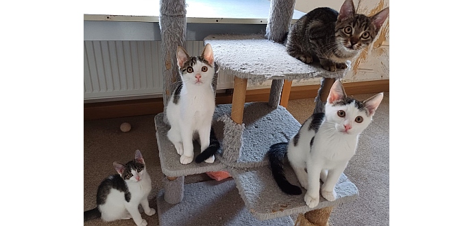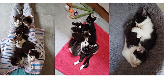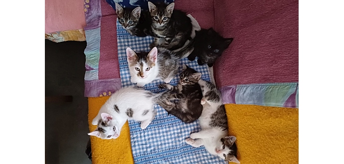 Und eine Katzenfamilie, Mama und ihre kleine Kitten, schutzlos alleine unterwegs.