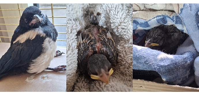 Nestlinge die völlig hilflos gefunden wurden und jetzt aus ein Leben in Freiheit vorbereitet werden.
