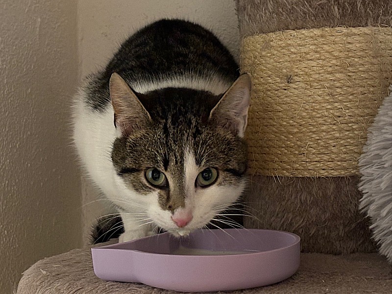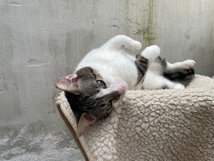 Er verträgt sich gut mit Artgenossen und freut sich bestimmt über ein/e Katzenkumpel/in in seiner neuen Heimat.