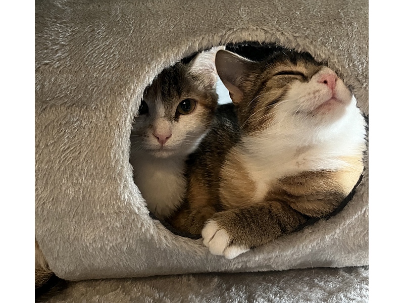 Wir haben einen tollen neuen Kratzbaum und ganz viele Höhlen und Lieblingsplätze.