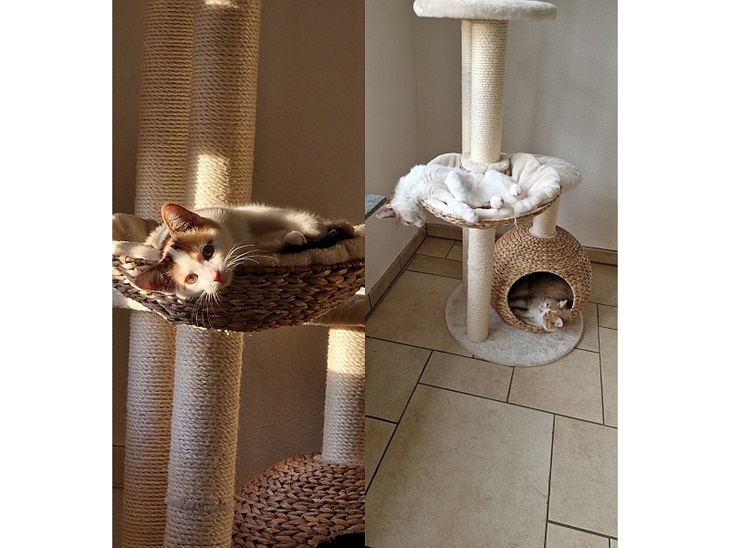 Inzwischen verstehen wir uns ganz gut, spielen Fangen, Verstecken, balgen uns, schauen zusammen aus dem Fenster und beobachten die Vögel oder fressen gemeinsam.