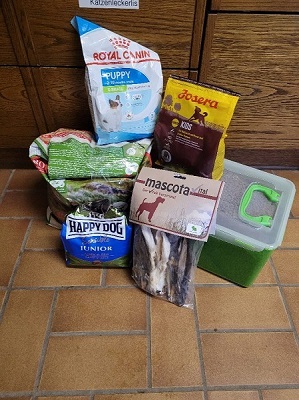 Vielen vielen Dank für all das tolle Futter, die Aufzuchtsmilch, die Futter-und Trinknäpfe und die Geschirre für unsere Hunde.
