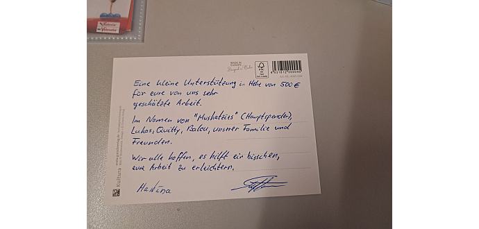 Es hilft uns sehr das ihr alle so an uns und unsere Schützlinge denkt.