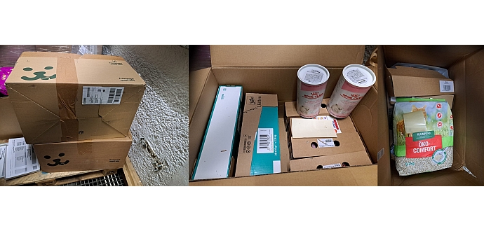 Uns haben ganz große Pakete erreicht, mit veganen Hundehalsbändern und Leinen und mit tollen Transporttaschen für unsere Katzen.