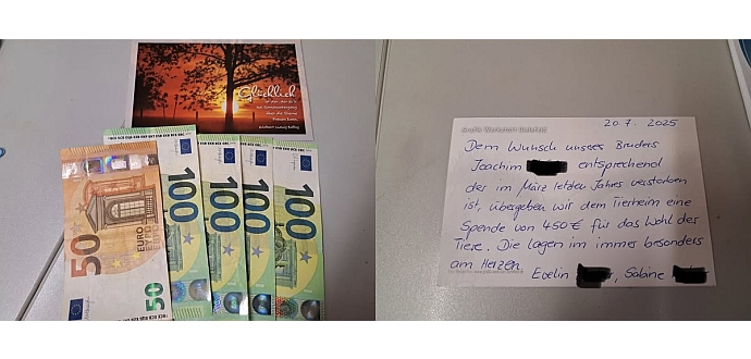 An jede anonyme Spende die bei uns eintrifft, egal ob mit der Post oder die vor unseren Türen steht, vielen Dank