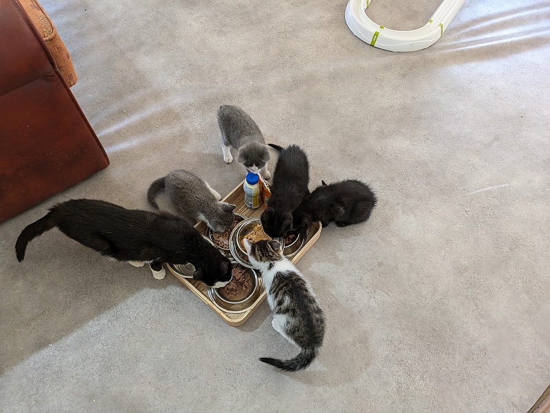 Unsere M und M Bande wurde zusammen mit ihrer Mama Maria gefunden und zu uns gebracht.