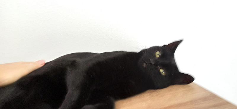 Weiterhin ist sie zurückhaltend, wechselt ihre jeweiligen Verstecke immer wieder, lässt aber Nähe gerne zu schnurrt, reibt ihr Köpfchen und rollt sich auf ihre Seite/Rücken.