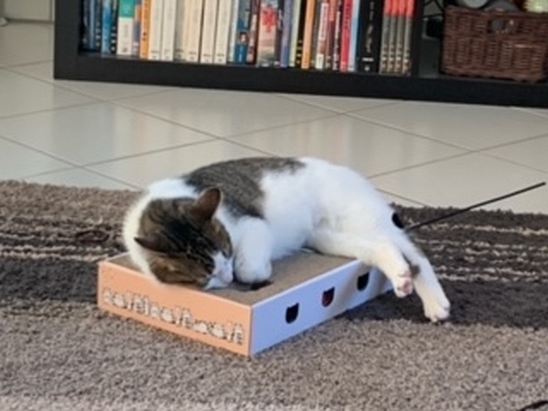 Oft liege ich nachts auf meinem eigenem Sofa vor der Schlafzimmertür und überfalle meine Dosenöffner wenn sie aufstehen..