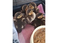 Das erste wurde alleine aufgefunden, einige Tage später konnten wir eine ganze Schnattergang die ohne Entenmama nahe einer stark befahren Strasse unterwegs war, sichern und auf unsere Pflegestelle bringen.
