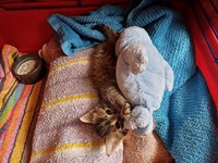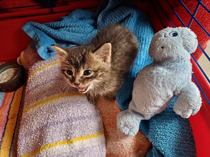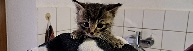 Das kleine 3 Wochen alte Kitten ist bei uns und leider geht es ihr nicht gut.