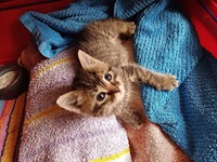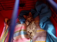 Die drei waren klatschnass, 2 sind ca 8 Wochen und das kleine ca. 3 Wochen alt.