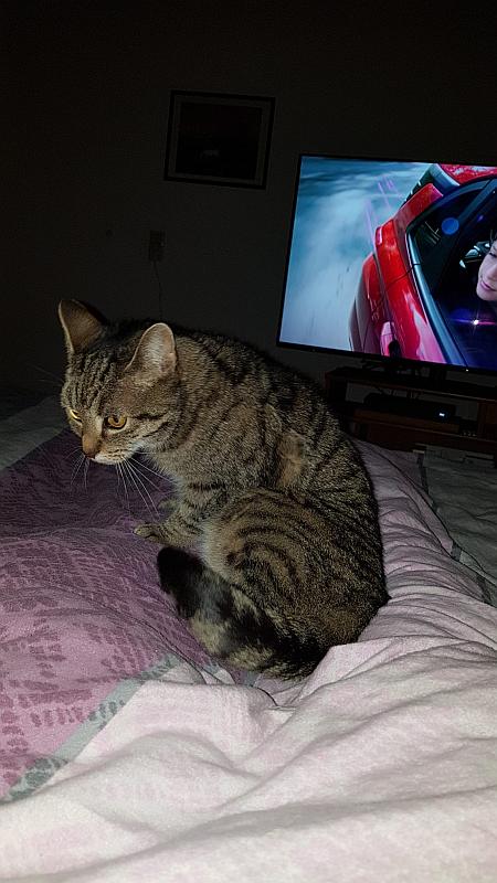 Shyla und ihr Herzensmensch beim gemeinsamen Fernsehschauen, sie scheint auch ein Fußballfan zu sein.
