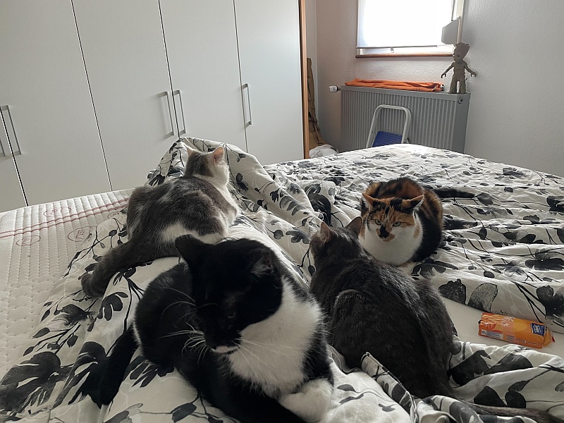 Morgens, direkt nach dem wach werden kommen immer alle Katzen ins Bett.