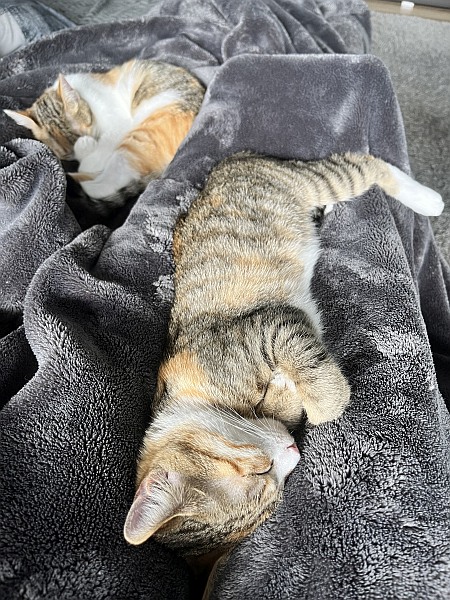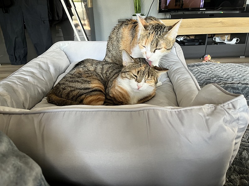 Beide sind super zutraulich; Liv schläft am liebsten auf mir drauf.