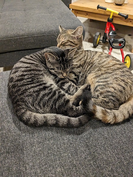 Seit ein paar Tagen hat sich die Lage zwischen unserem Hund und den Katzen sehr entspannt.