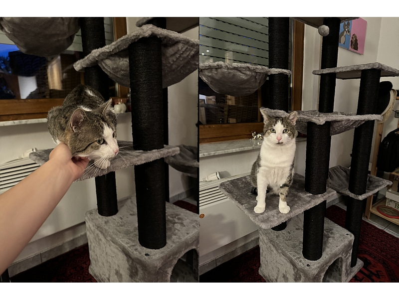 Das haben wir aber direkt zu Hause geputzt und er hat am gleichen Abend noch seinen Kratzbaum eingenommen.