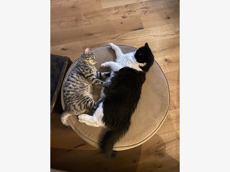 Nachdem er für andere Katzen nicht mehr ansteckend war, bekam er mit Cody einen neuen Spielkameraden und Bruder.