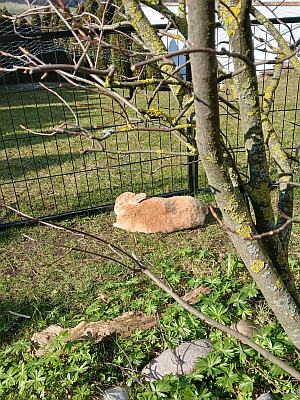 Kräuter, Zweige...und Löwenzahnsalat (hat nichts mit Löwenzahn zu tun) fressen sie sehr gerne und holen wir extra in einem speziellen Laden.