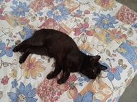Mittlerweile geht es es Sadie richtig gut, sie hat eine Katzenfreundin und hat entdeckt das es sich im Bett von ihrer Pflegemama ganz wunderbar schlafen lässt.