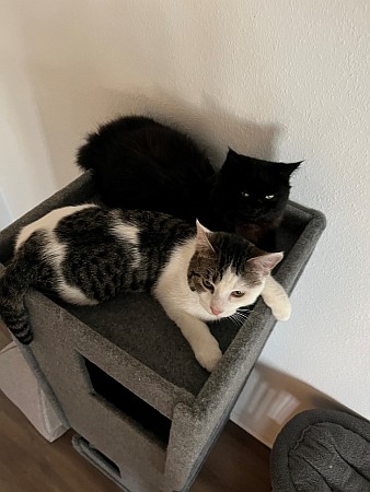 Am Anfang waren die beiden Katzen noch etwas vorsichtig aber mittlerweile spielen die beiden fleißig miteinander.