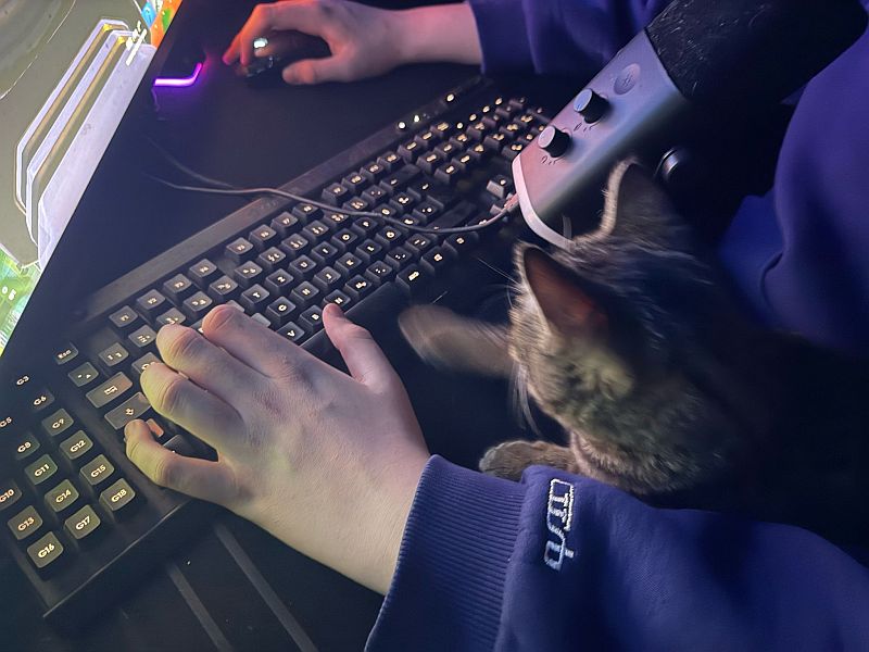 Sie haben viel Spass, bewachen das Treppenhaus und die Computerarbeit.