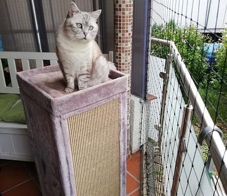 Auch der Kratzbaum auf dem Balkon wurde so gestellt, damit ich alles im Blick habe.
