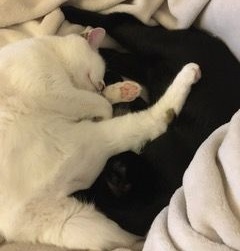 Und dann ist da noch der kleine schwarze Rumo. Er hat mir super viel gezeigt, wovor ich besser keine Angst haben sollte und wovon ich besser meine Pfoten lassen sollte, weil es ihm gehört. Manchmal kämpfen wir, weil wir noch nicht so ganz verstehen, was der andere mag und nicht mag oder wann wir uns besser in Ruhe lassen sollten, weil es Relax Time ist. Wenn wir dann aber mal zusammen durch die Wohnung tigern, springen wir ganz gerne und futtern aus dem gleichen Napf. Gelegentlich kuscheln wir auch gemeinsam und putzen uns gegenseitig - am liebsten schauen wir aber aus dem Fenster heraus und beobachten Menschen und Tiere. Gerade dürfen wir uns sogar auf unseren „Katzenbalkon“ setzten - ich glaube, dass unsere Dosenöffner gerade planen, wie unsere Katzenleiter in den Garten aussehen muss. Aber bleibt gespannt - ich berichte in ein paar Wochen mehr.