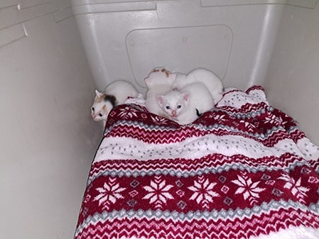 Wir wollen uns gar nicht vorstellen wie diese süsse Katzenfamilie mit ihrer verletzen Mutter durch die kalte Jahreszeit hätte kommen sollen.