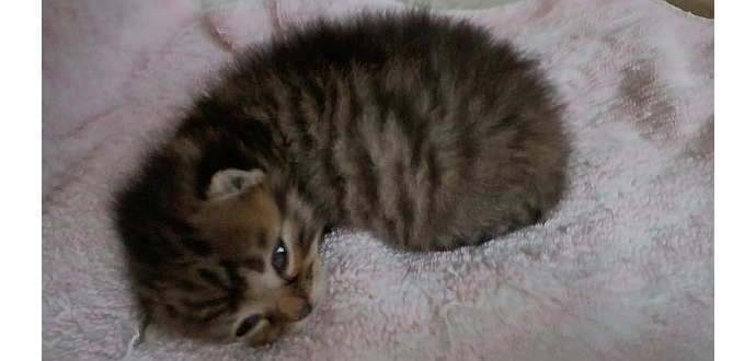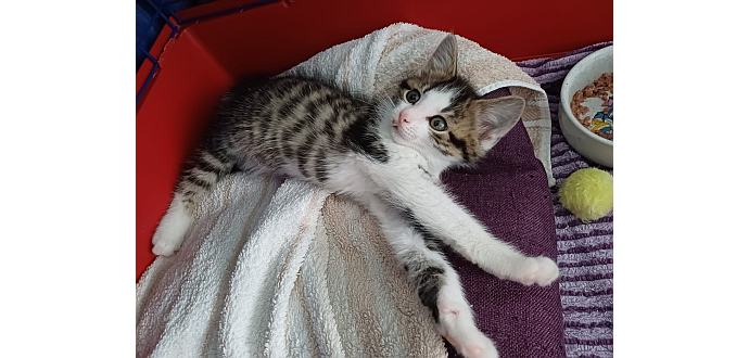 Der Kleine ist erst circa 6 Wochen alt, hatte schlimm vereiterte Augen und war sehr abgemagert.