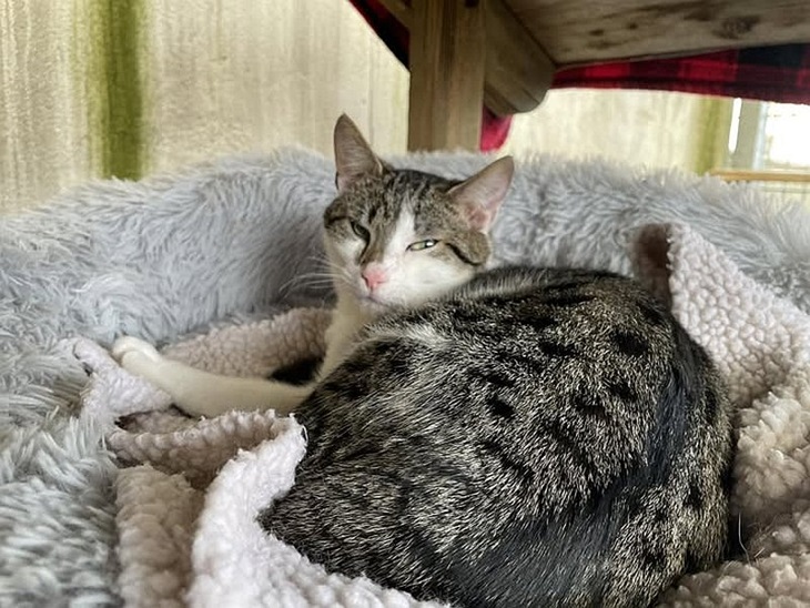 Er verträgt sich gut mit Artgenossen und freut sich bestimmt über ein/e Katzenkumpel/in in seiner neuen Heimat.