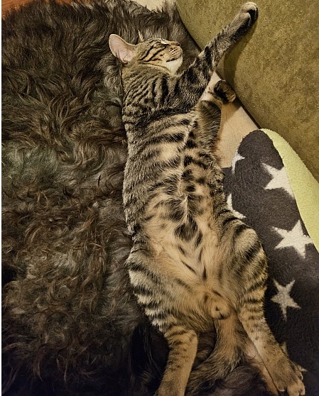 Nur mit der großen Katze komme ich noch nicht ganz klar, hab sie auch erstmal angefaucht, damit sie gleich Bescheid und weiß, wer hier der Chef im Haus ist. Ich denke aber, dass wir noch Freunde werden.
