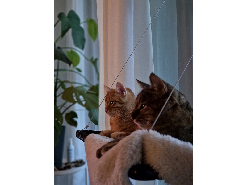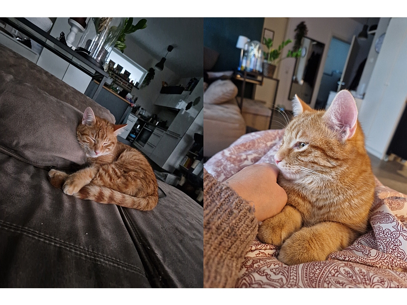 Er hat sich schnell an seine neue Umgebung gewöhnt und hat nach und nach eine gute Beziehung zu unserer bereits vorhandenen Katze Mica aufbauen können.