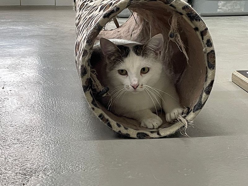Sie verträgt sich gut mit Artgenossen, ein/e freundliche/r Katzenkumpel/in würde ihr bestimmt auch dabei helfen Vertrauen aufzubauen und eine tolle Gefährtin zu sein.