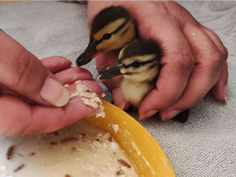 An einem Verkehrsknotenpunkt in Geislingen, in der prallen Sonne wurden frisch geschlüpfte verwaiste Entenküken gefunden, die wahrscheinlich auf dem Weg zum nächsten Wasser ihrer Mutter nicht folgen konnten.
