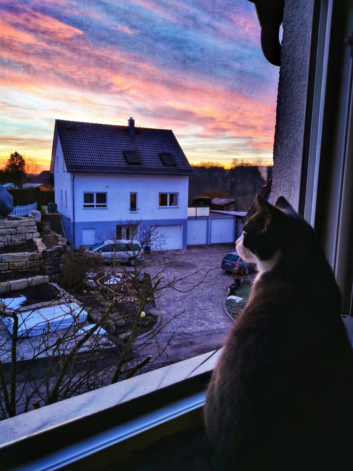 Nun haben sie rundherum den Blick auf die Straße um die Katzen der Nachbarschaft und vor allem sehr aufmerksam die Vögel zu beobachten.
