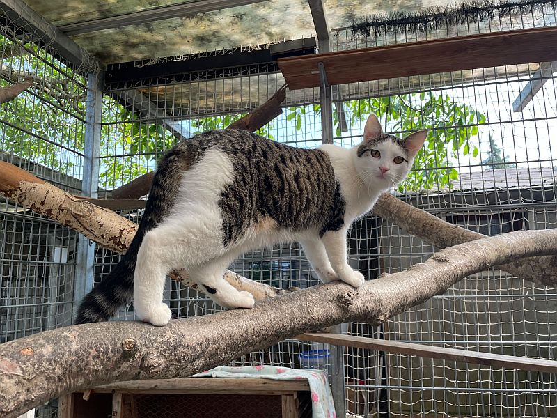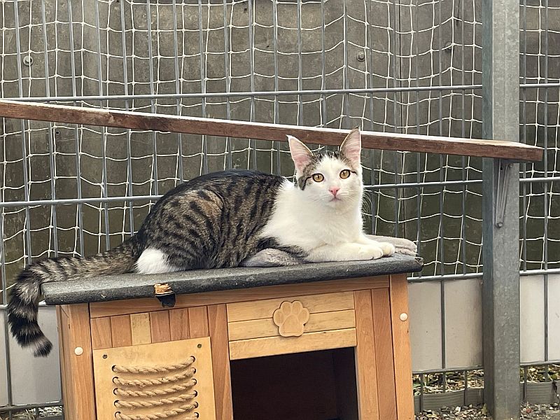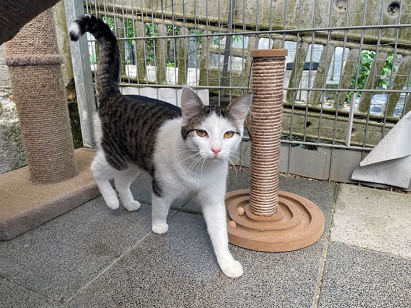 Goofy verträgt sich gut mit Artgenossen, ein/e freundliche/r Katzenkumpel/in würde ihm bestimmt auch dabei helfen Vertrauen aufzubauen und ein toller Gefährte zu sein.