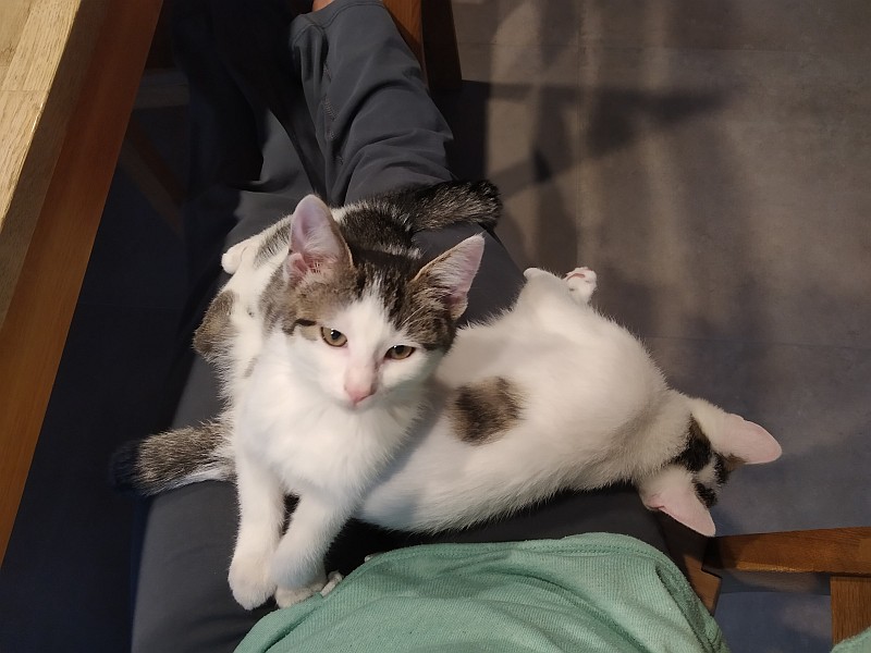 Sammy (Flavio) hat sich nach dem Öffnen des Transportkorbs gleich zu Fee gelegt, Luna (Flower) war kurz etwas skeptisch und hat etwas gebrummelt....