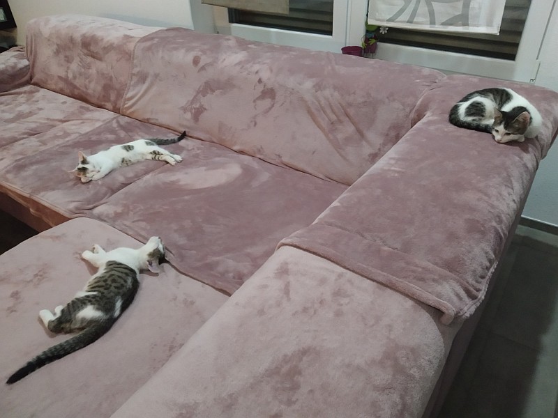Alle 3 sind mittlerweile putzmunter und toben ausgelassen durchs das Haus und schlafen danach ganz entspannt.