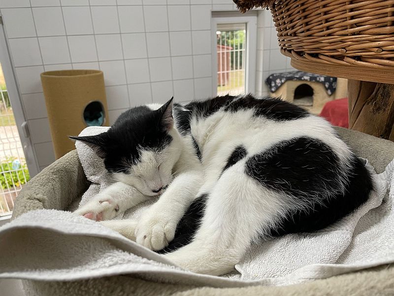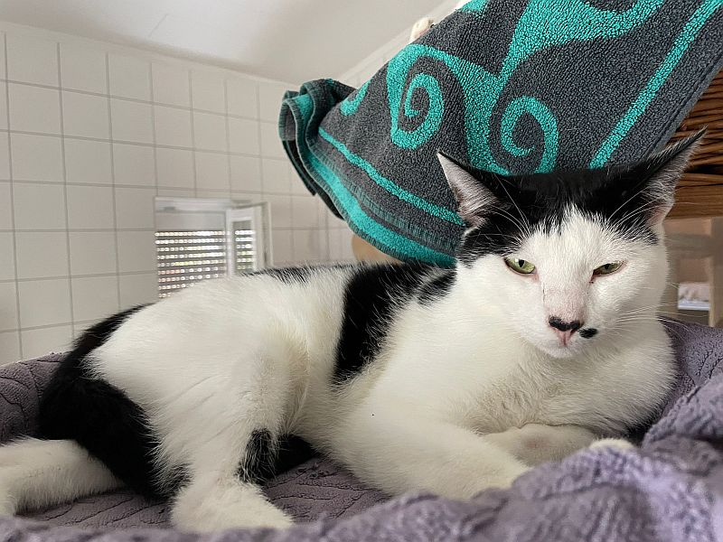 Sie hängt sehr an ihren Katzenfreunden/innen aus dem Tierheim, es wäre schön wenn Kimberly mit einem/einer ihrer Freunde zusammen vermittelt werden kann.