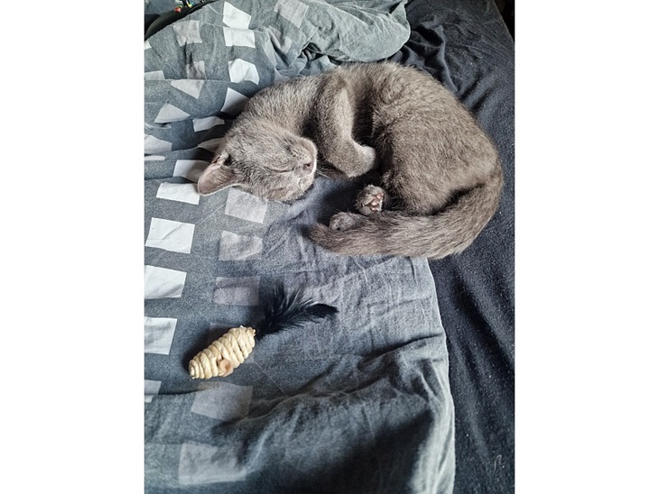 Ansonsten schläft er eigentlich viel und wenn nicht dann spielt er am liebsten Fußball.