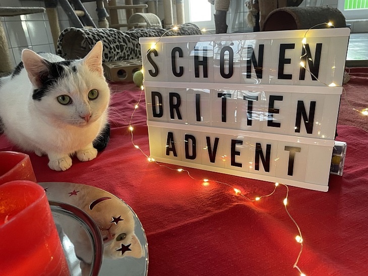Da wir wissen dass wir Katzen ja sehr beruhigend auf euch Menschen wirken, senden wir euch hier ganz liebe enspannte Grüsse.