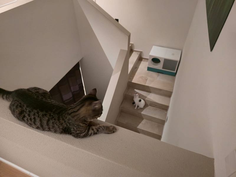 Sie haben viel Spass, bewachen das Treppenhaus und die Computerarbeit.