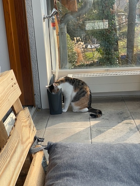 Dank dem Wintergarten kann sie schon fleißig Vögel beobachten und sich durch die Scheiben mit dem Garten vertraut machen, bevor es in ein paar Wochen dann endlich rausgeht.