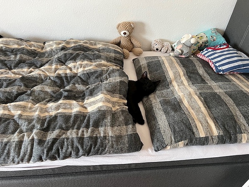 Zippodeckt sich mit Vorliebe zu, man könnte fast meinen, er ahmt dabei uns Menschen nach :-)