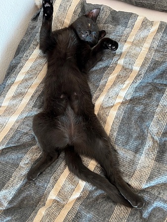 Er sucht häufig meine Nähe und kommt zum kuscheln und spielen, zieht sich dann aber auch zurück, wenn er genug hat.